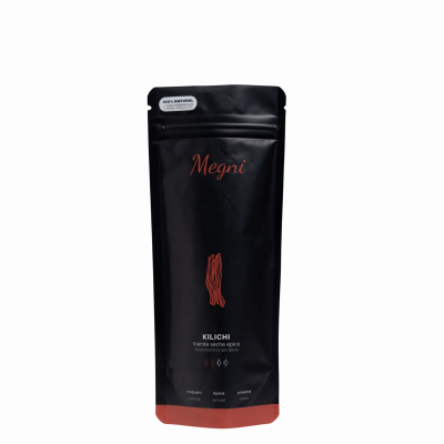 Un Apéritif inspiré des traditions culinaires africaines, le Kilichi Épicé Pimenté est élaboré selon un savoir-faire artisanal qui sublime la viande par un mélange d’épices raffiné et un séchage maîtrisé.